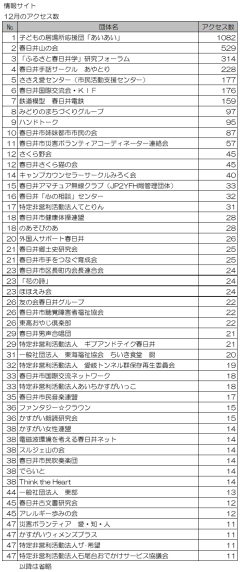 公開日:2025年10月04日センターからのお知らせささえ愛センター(市民活動支援センター)12月!!こんなに多くのアクセスがありました!!各団体の皆さんが、日々、イベント情報の紹介や活動報告などをこのサイトを活用して行っています。
